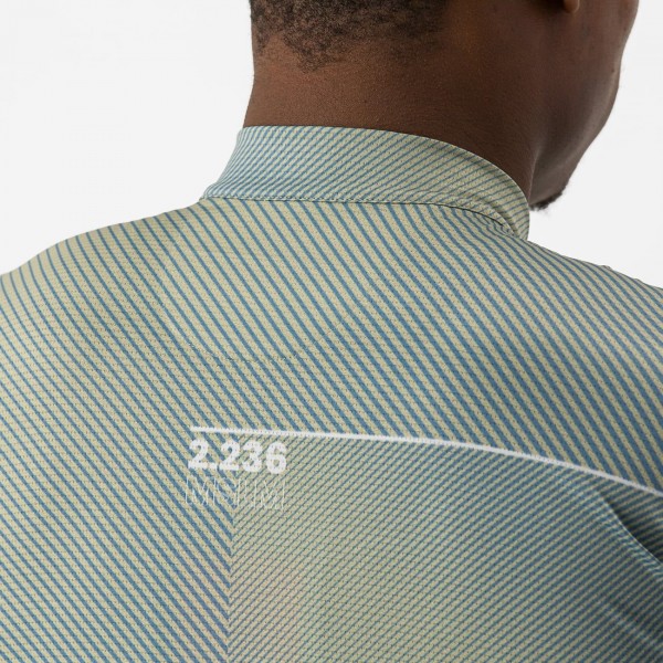 sehr eng anliegende Castelli Schnittführung gewährleistet verbesserte Aerodynamik besteht an der Front- und Rückseite aus dem sehr leichten, elastischen und atmungsaktiven Velo Light Material by Sitip Active Einsatz von 3D-Mesh Netzmaterial an Armen, Seitenbahnen und Rückentaschen für perfekten Sitz am Körper und optimale Atmungsaktivität Verwendung von recycelten Materialien zeigt das Umweltbewußtsein des Herstellers etwas länger geschnittene, eng anliegende Ärmel sorgen für aerodynamischen Sitz durchgehender, verdeckter Reißverschluss (YKK Vislon - Zipper) Highlight ist der goldene Zipper in Form der Siegertrophäe "trofeo senza fine", die dem Gesamtsieger der Rundfahrt am Ende verliehen wird aufgesetzte, 3-teilige Rückentasche seitlich angeschrägt für leichteren Zugriff elastischer Bundabschluss mit innenliegendem Silikonstreifen verlängerter Schnitt am Rücken